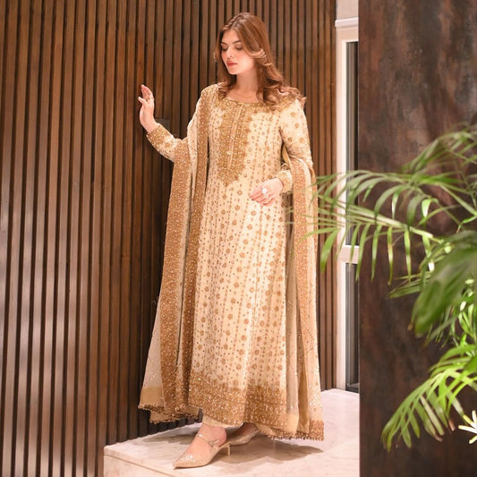 Product Details: Shirt Embellished pure chiffon shirt front and back Dupatta Embroidered net dupatta Sharara...