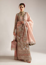 Product Description: This regal outfit rendered in a beautiful shade of Pink on an organza...