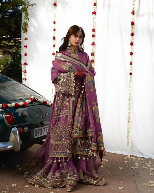 Product Details: Shirt: Embroidered Karandi Gharara: Embroidered Karandi Dupatta: Embroidered Organza Description: Captivating with its refined elegance, Devina...
