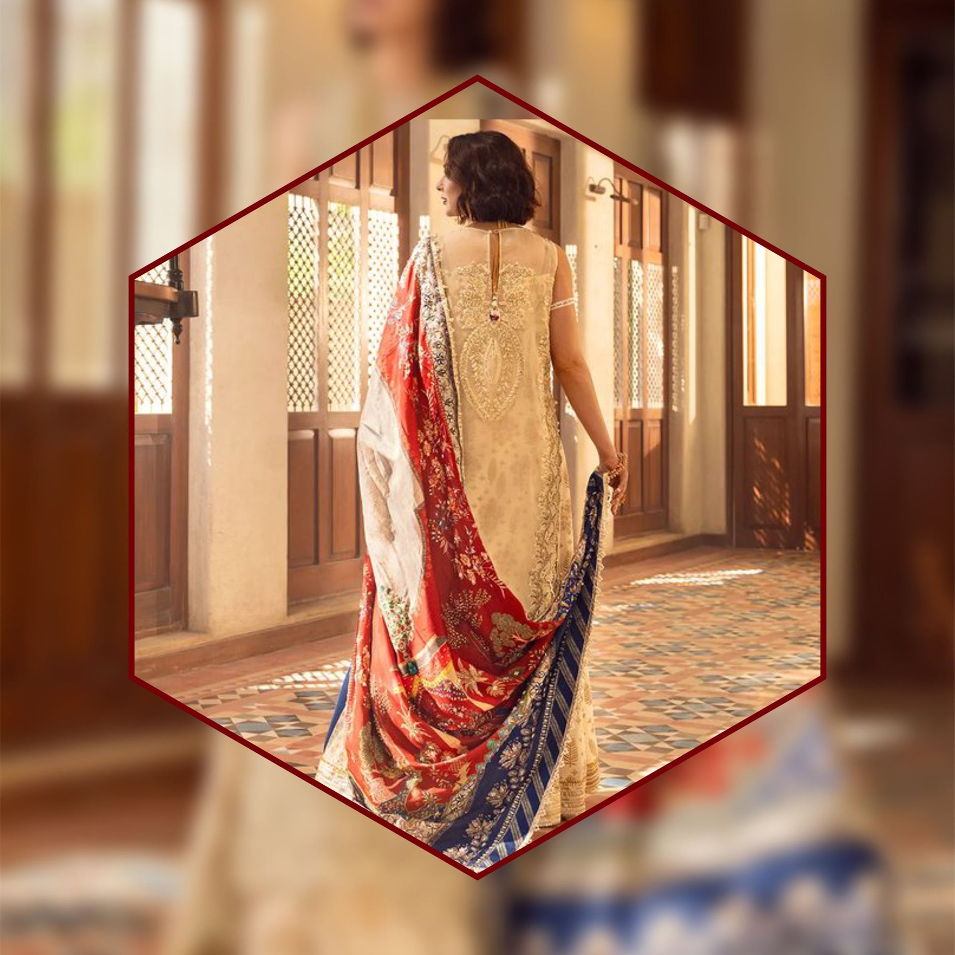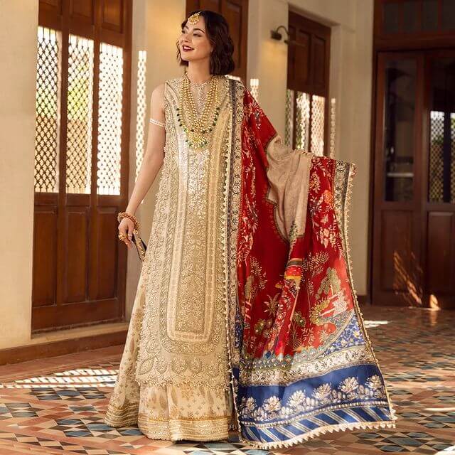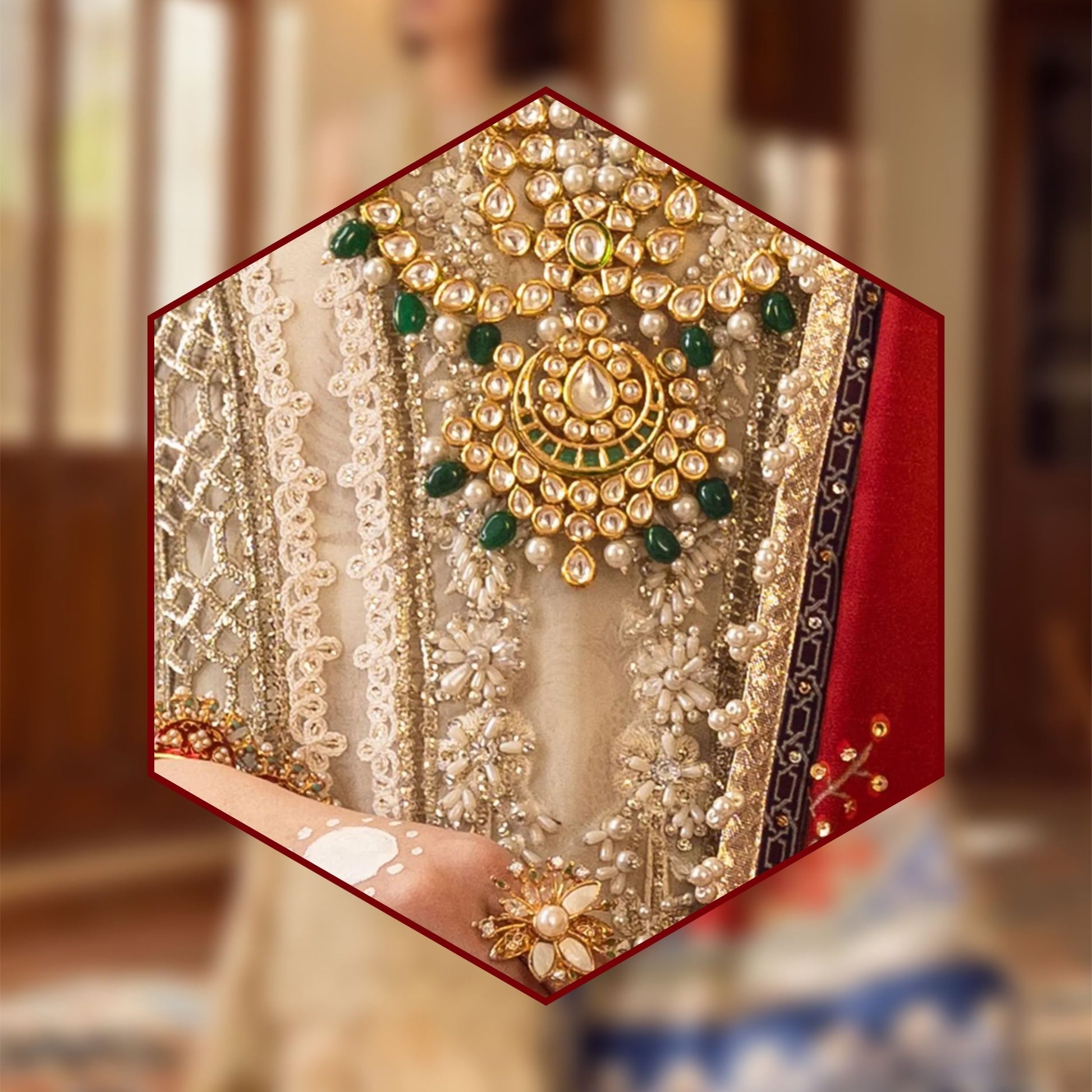 Sleeves:- fully embellished and heavy sequence work.