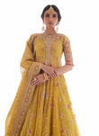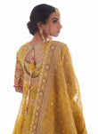 Introducing our stunning ensemble, featuring a Net Kalidar, a Golden Tissue Dupatta, and a Jamawar Lehenga. This ensemble is designed to make you feel like royalty, exuding elegance, and grace. The net Kalidar adds a touch of ethereal beauty with its flowing silhouette. The intricate work of sitara, tilla, resham, mukaish, and gotta enhances the overall design, creating a mesmerizing and luxurious look. Wear this ensemble to weddings, special occasions, or any celebration where you want to make a statement. The blend of net, tissue, and jamawar fabrics, along with the meticulous embellishments, makes this ensemble a true work of art. Embrace the opulence and allure of this stunning set and leave a lasting impression wherever you go.