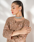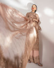 Step into elegance with Honey Waqar’s exquisite Pakistani Formal Wedding Edition ensemble, a masterpiece in luxurious rose gold fabric. Intricately embroidered with shimmering embellishments, this outfit radiates opulence, making it the perfect choice for weddings and grand festivities. The regal silhouette, paired with delicately adorned trousers and a gracefully draped dupatta, adds an air of sophistication. Elevate your style with this timeless, handcrafted ensemble, designed for those who desire nothing less than perfection.