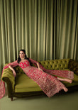 Embark on a journey to an enchanted realm with this ethereal ensemble, a fusion of fairy-like perfection and timeless elegance. Imagine a mesmerizing shocking pink long shirt adorned with intricate silvery lined motifs and a delicately scalloped hem, each detail crafted to captivate and charm. Picture cascading sequins, lustrous pearls, and glistening crystals adorning the fabric, creating a mesmerizing display of light and movement with every step you take. Completing this captivating look are cigarette pants in a complementary cherry hue, boasting side seam details that add a touch of sophistication and cohesion to the ensemble. Step into the spotlight and let your inner fairy shine with this exquisite ensemble, a testament to the boundless beauty of imagination and the enduring power of elegance.