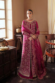 Emerges as a beacon of elegance, donning a Ravishing Dark Fuchsia gown in Organza, meticulously paired with Raw Silk, Sharara, reflects the masterpiece of hand crafted artistry. A divine touch is introduced through a delicate and rich Zari Oraganza Dupatta with motifs on the corner and sequence spray dance in jubilant harmony. Raizel’s presence will make you the center of attention, worthy of admiration and awe.