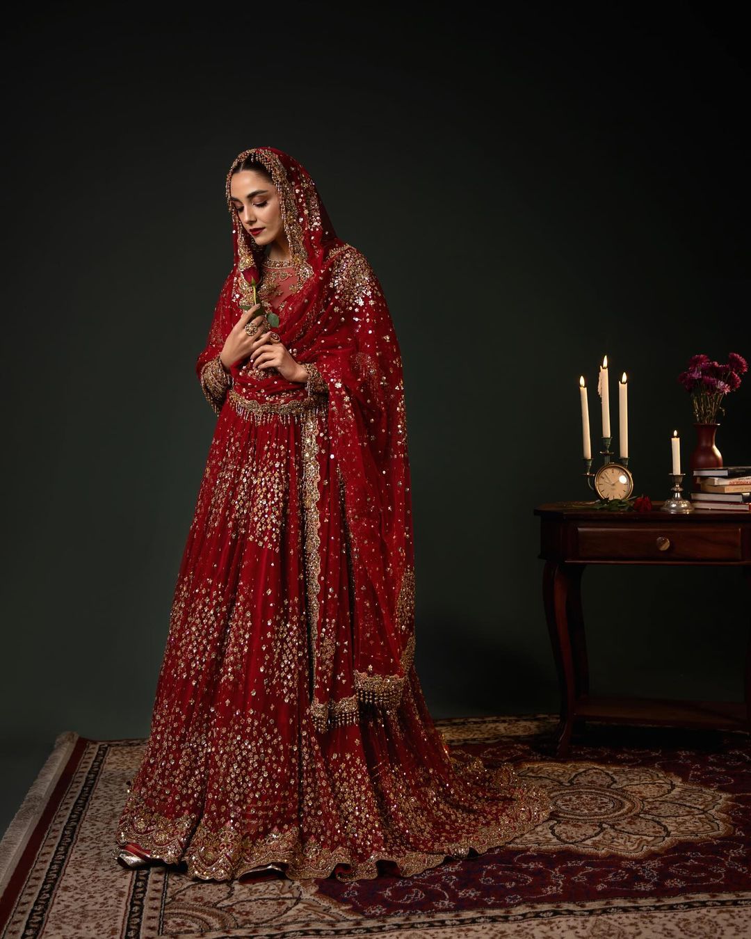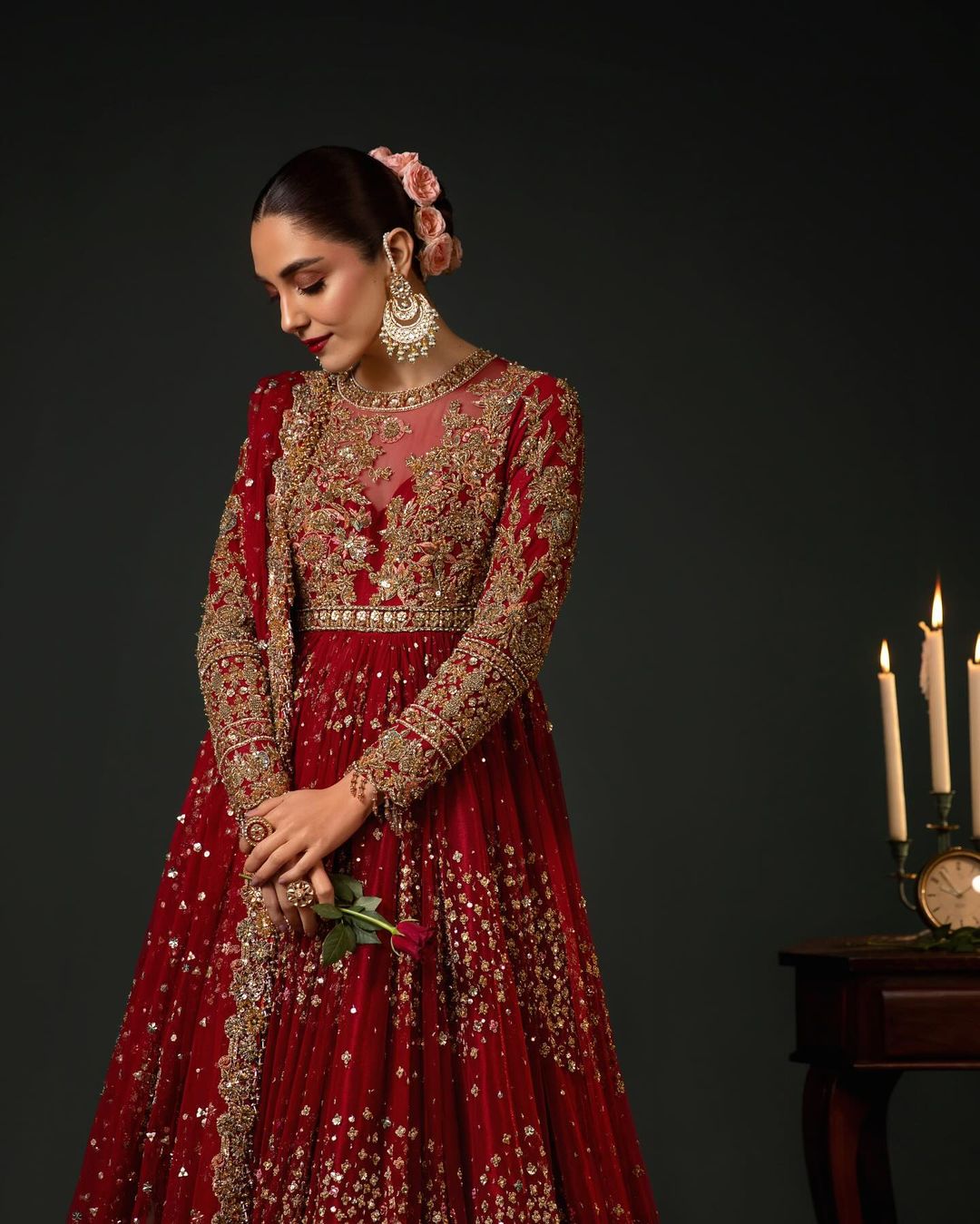 Roza' is an ethereal blend of traditional craftsmanship & intricate detailing - encircled with meticulous 3D floral work woven with exquisite dabka-naqshi work, delicate stones & pearls. Draped in an enchanting red palette, this creation showcases a canvas of glimmering sequins cascading gracefully all over the sheer fabric epitomizing the true essence of femininity. The delicate details of cut dana & cut moti seamlessly elevate this masterpiece to its classic status. With its refined elegance & bold allure you can wear it on nikah & baraat occasions.