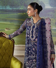 Stella dazzles in a majestic navy blue hue, adorned with intricate sequins waves that sparkle with every movement. A soft pink satin hem border adds a touch of vibrancy. The dupatta features embroidery in soft pink, coral, and lime shades, elegantly complemented by sparkling diamantes spray for added opulence, addition to it is a satin four sides border that make it culminating in a look that exudes timeless elegance and make it.