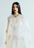 This beautiful ivory outfit definitely makes a style statement. It is paired with foil printed sharara and embroidered dupatta with heavily embellished borders on four sides with sequins, cut dana and with nakashi, dabka, making it a stellar piece.