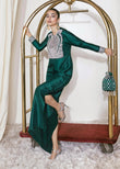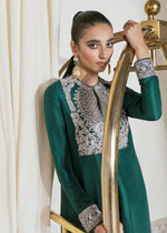 Fabric: Raw Silk ShirtWork Technique: EmbellishedDescription:This elegant emerald green long shirt featuring box pleat is aesthetically decked with silver and pink jaal around the keyhole neckline, encrusted with pink sequin floral motifs. Completing the look with coordinating embellishments on sleeve opening. Dupatta or Pants can be added on customer demand, separately purchase.