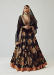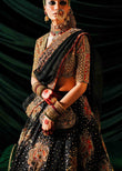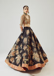 Feast your eyes on this stunning black pure satin silk lehenga, adorned with intricate rust patchwork lillies and sequins, Paired with a black pure organza dupatta, featuring captivating rust and black patchwork, choli that complements the ensemble flawlessly. This opulent combination exudes elegance and sophistication.